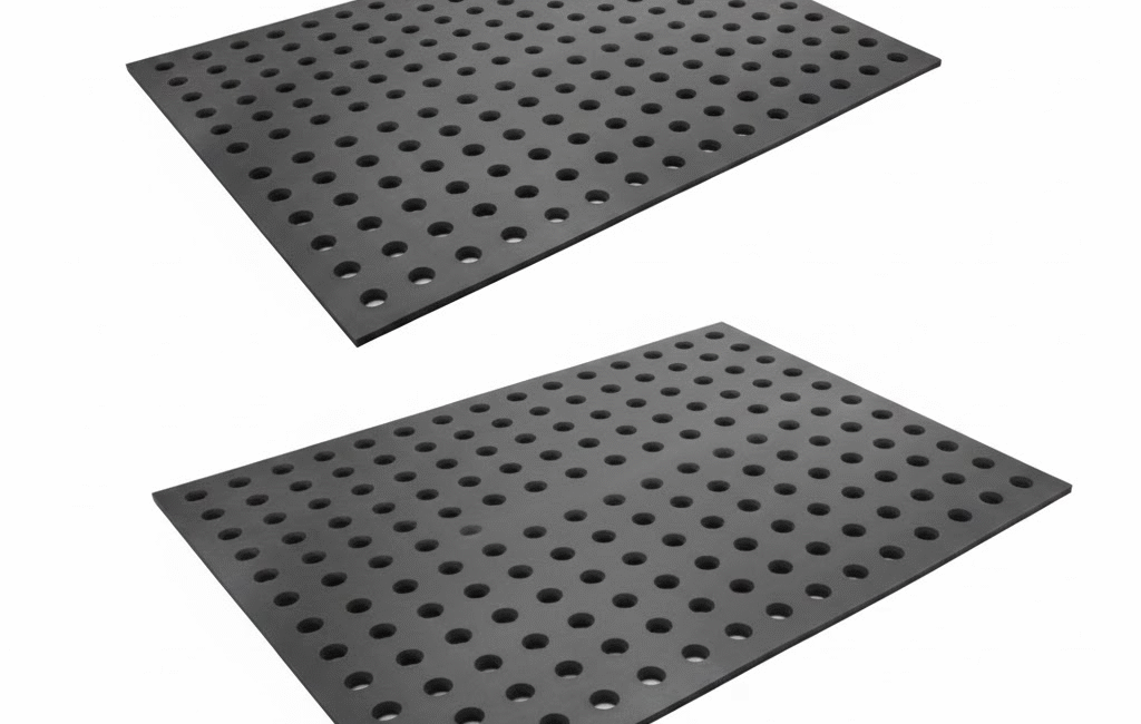 A superfície é texturizada para ser antiderrapante, reduzindo drasticamente o risco de acidentes de trabalho em locais com presença de óleos.