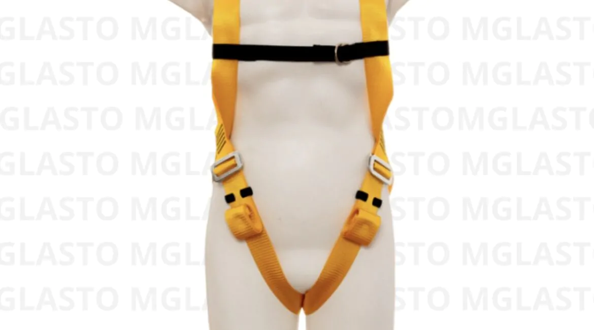 - Cintos de segurança de corpo inteiro com argolas em D dorsais para sistemas de proteção contra quedas.
